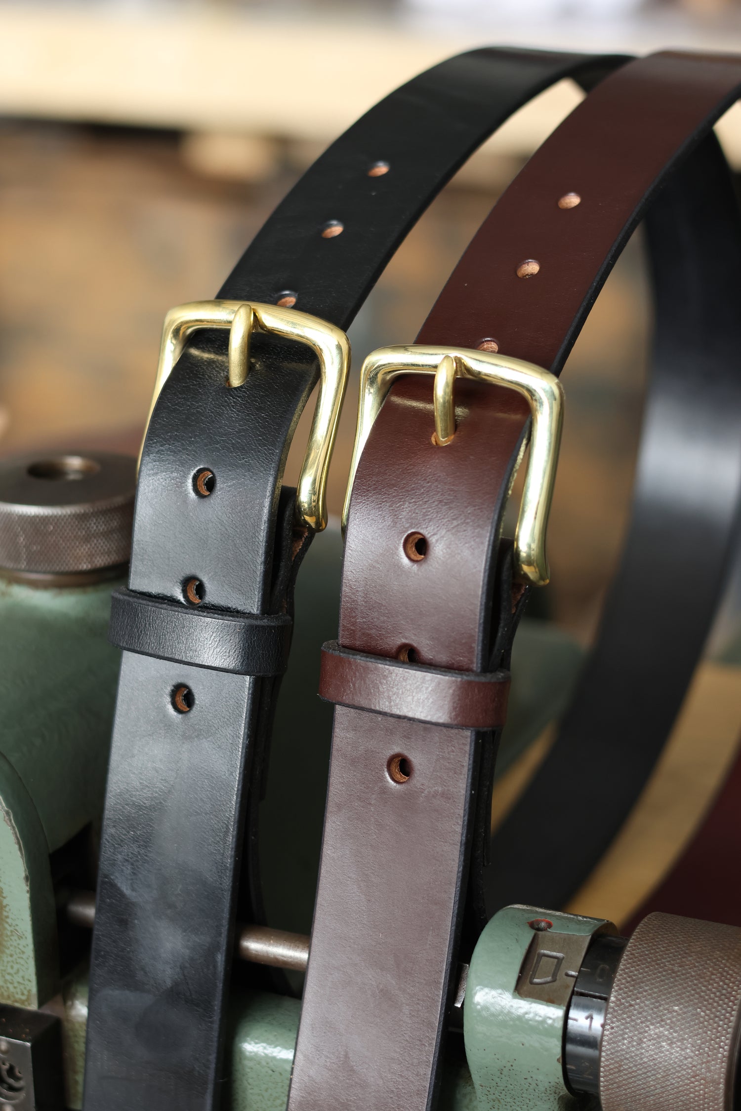 Each belt is made here in our Lincolnshire workshop, from cutting through to finishing. We use J. & E. Sedgwick bridle leather, solid brass buckles, and a process built around making things well.