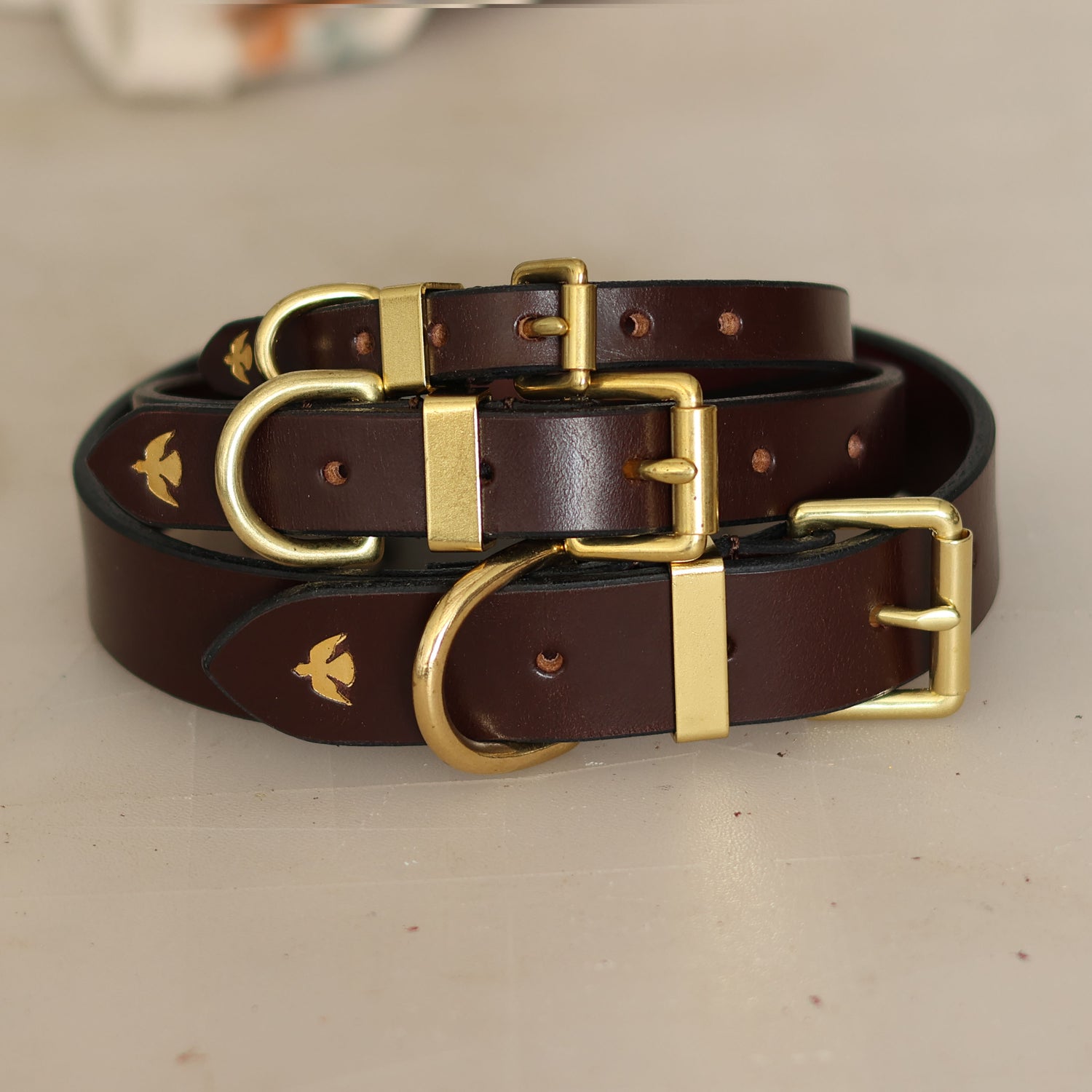 Each collar features hand-bevelled, burnished, and dyed edges, and is finished with my signature logo on the tip. With five evenly spaced adjustment holes, the collar offers a reliable, comfortable fit.