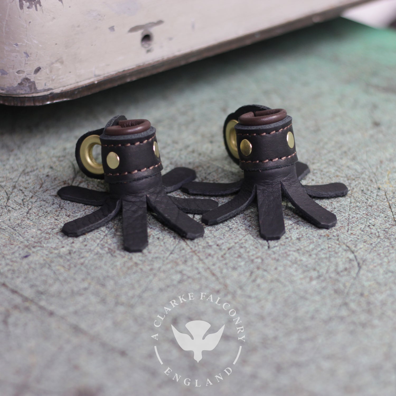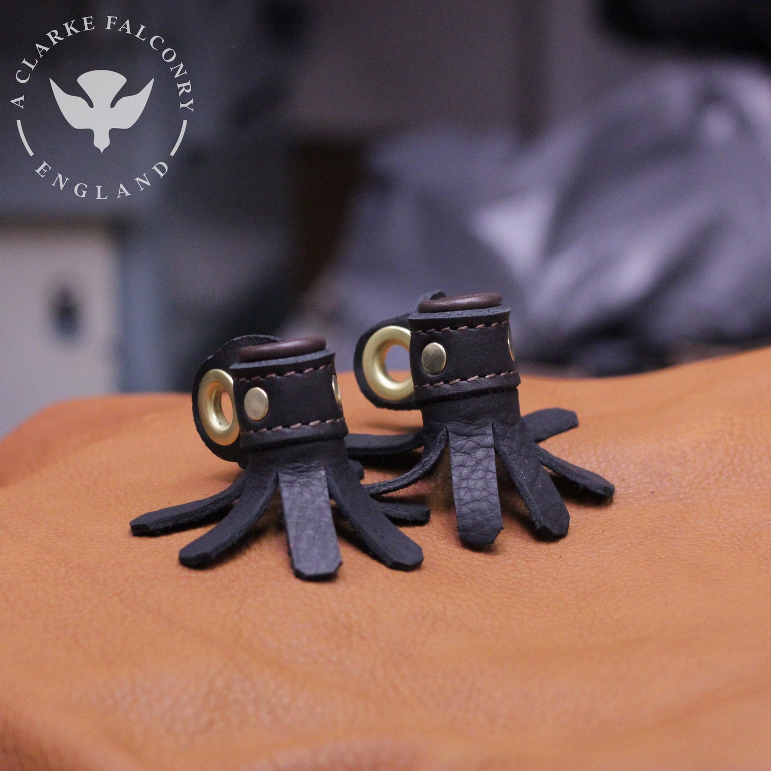 Made from heavy-duty leather with solid brass studs, these chaps give the bird freedom to foot naturally while still providing protection.