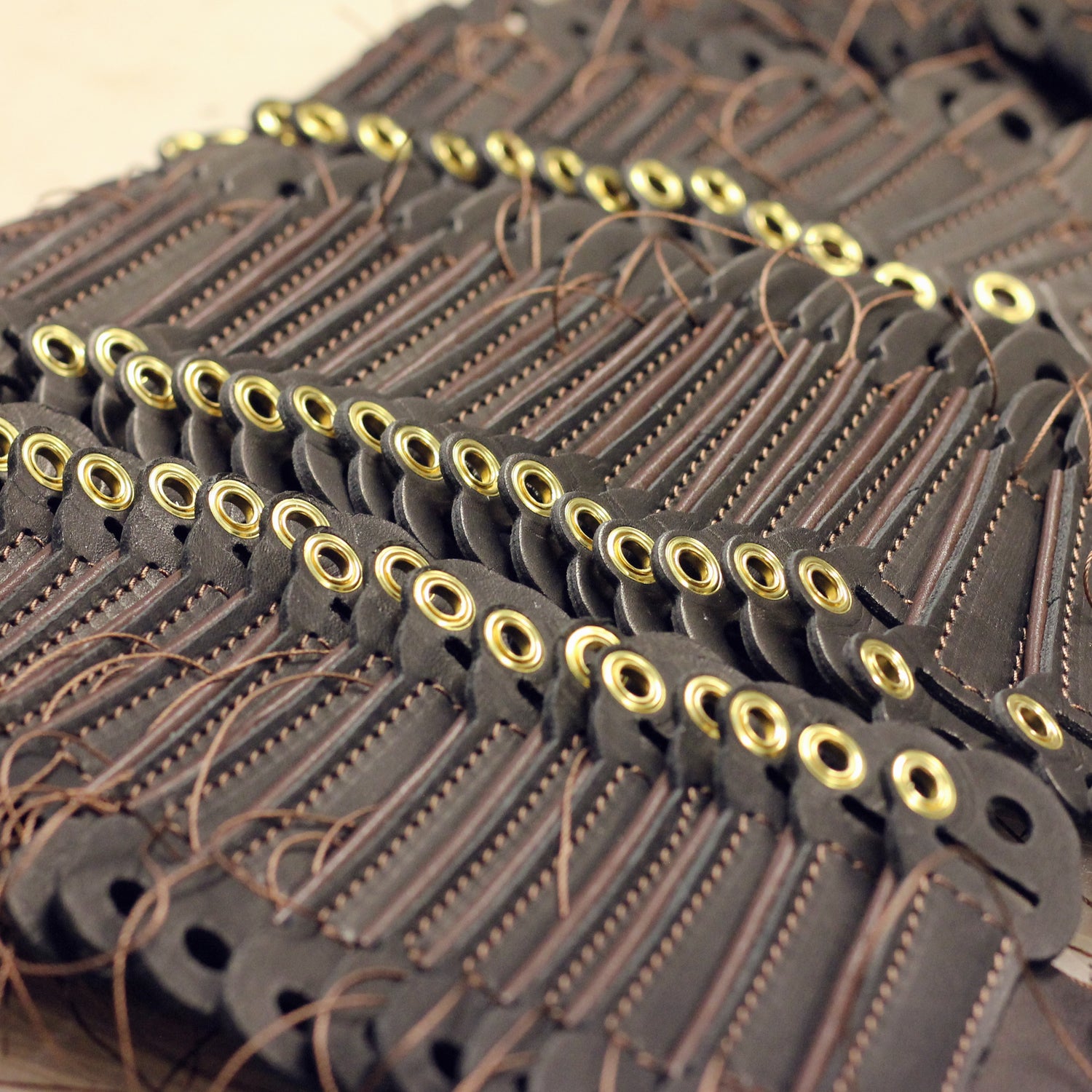 - Solid brass eyelets and studs.