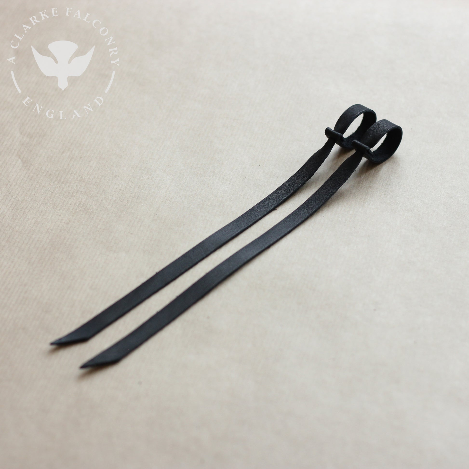 These permanent flying jesses are made from strong leather and feature a reinforced double-thickness tab for a secure anchor point.