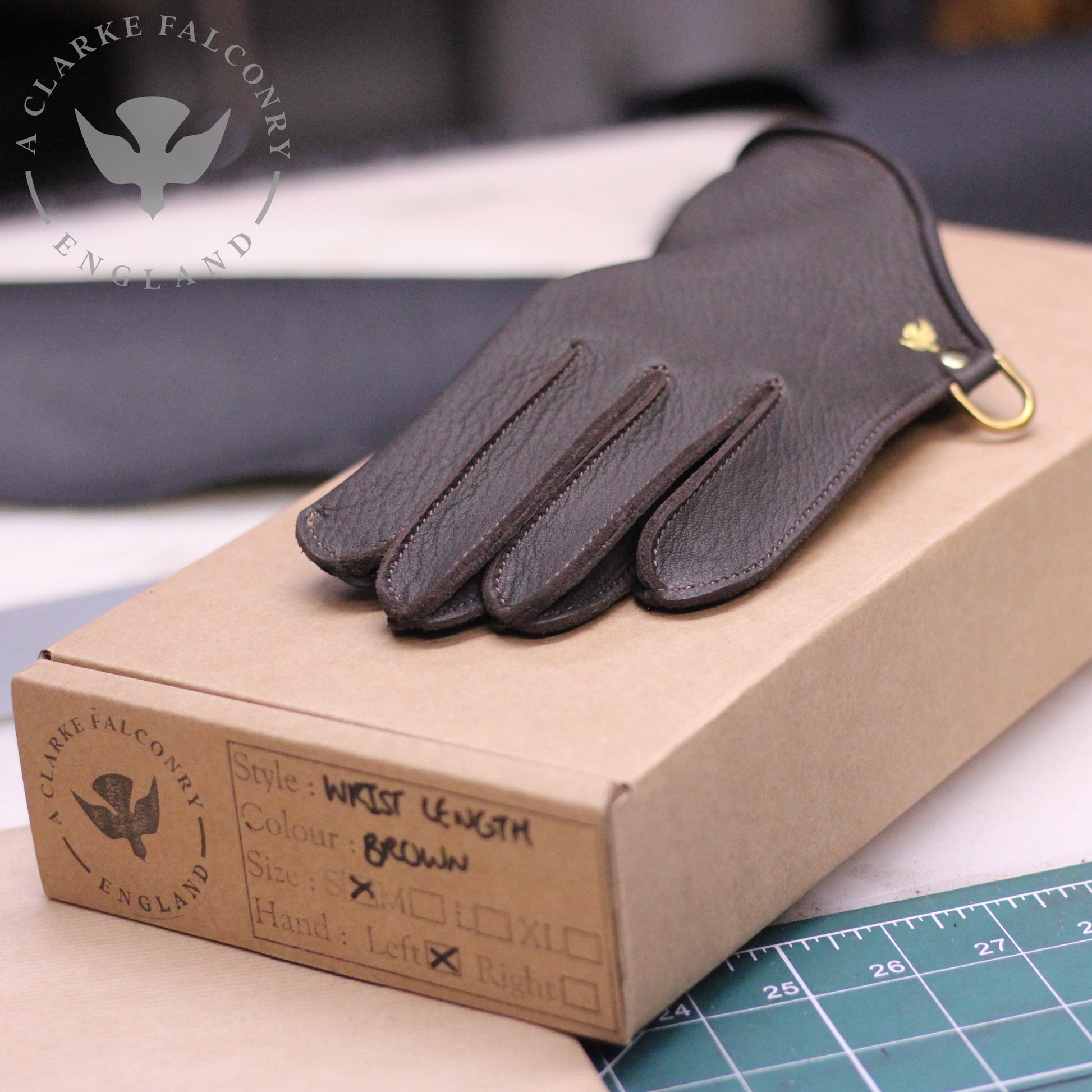 A wrist-length falconry glove, crafted from the worlds finest deerskin to give a comfortable fit. Designed for everyday use with smaller birds of prey.